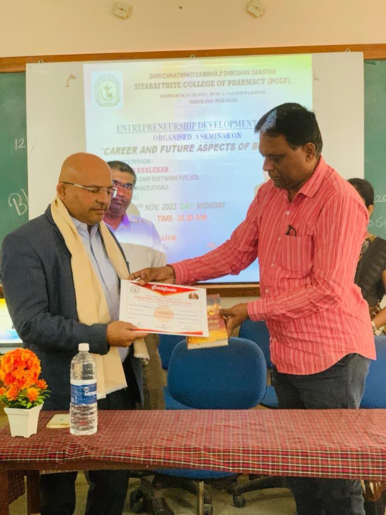 GMP, QMS, and attitude development training programs are organized for various companies and colleges in India, aimed at internal development and mentoring individuals as pharma experts. These programs provide in-depth knowledge of the pharmaceutical industry, regulatory QMS audits, and pharmaceutical import-export processes.